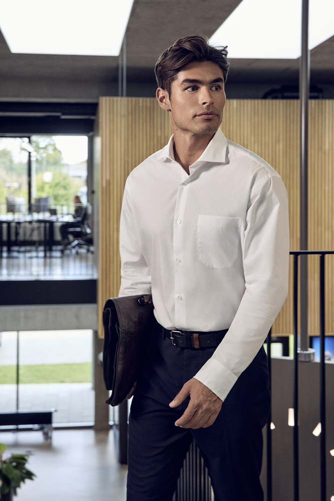 Einfaches und klassisches vielseitig verwendbares Hemd aus weichem Popeline. Ein Langarm-Hemd in bester Easy Care-Qualität. Brusttache.