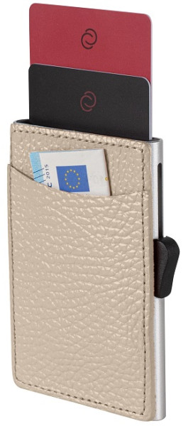 Metallkartenhalter für 4-7 Karten,"Pure", Front mit Donato-Leder, mit Steckfach mehr