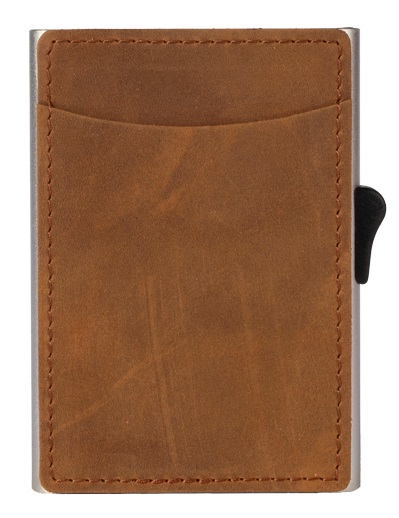 Metallkartenhalter XL für 8-12 Karten,"Pure", Front mit Mountainbear-Leder, mit Steckfach mehr