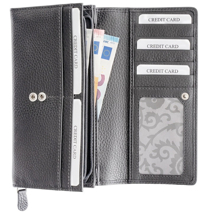 mit Klappe und 2-fach verstellbarem Druckknopf, hinten Steckfach und RV-Fach, div.Steck-und Kartenfächer innen, Münzfach mit RV innen, mit floralem Druckfutter