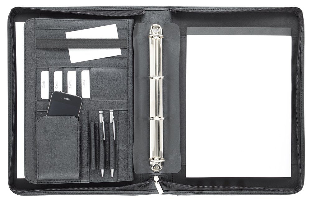 Ringmechanik ø 30 mm, großes Faltenfach, Klemm- und Kartenfächer,