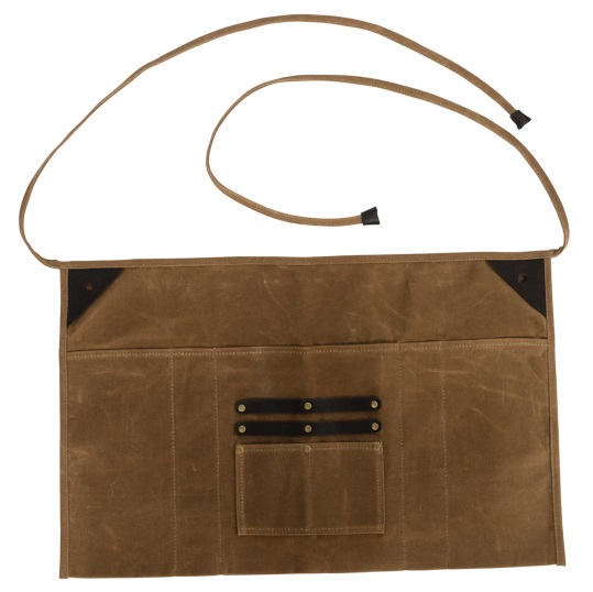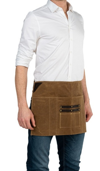 gewachste Baumwolle, lange Bindebänder, vorne mit diversen Taschen, Akzente in Lederimitat mehr
