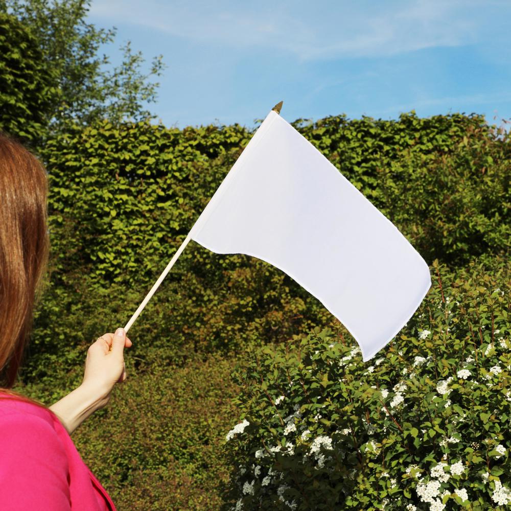 Weiße Fahne an einem runden Holzstab. Die Fahne eignet sich ideal für die Veredelung im... mehr