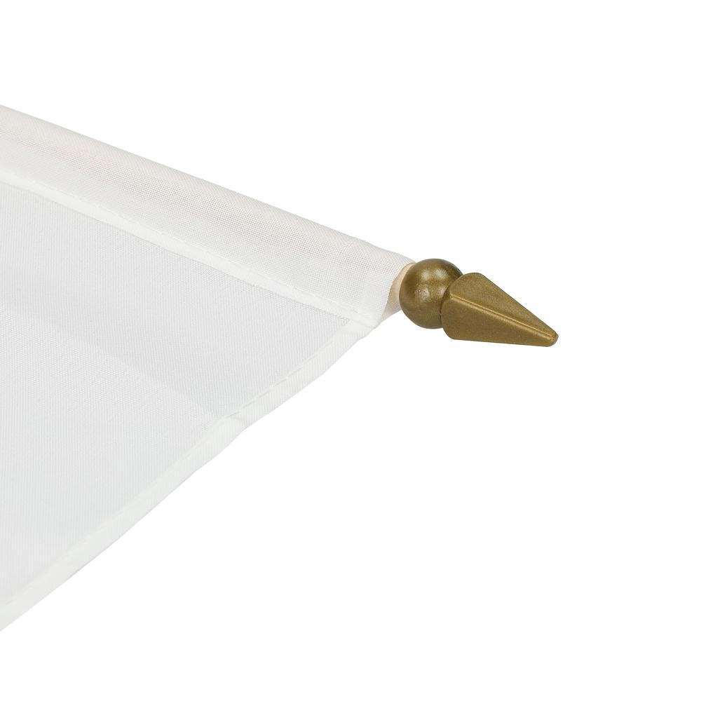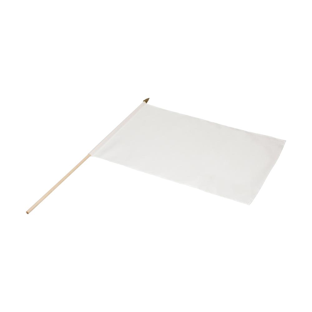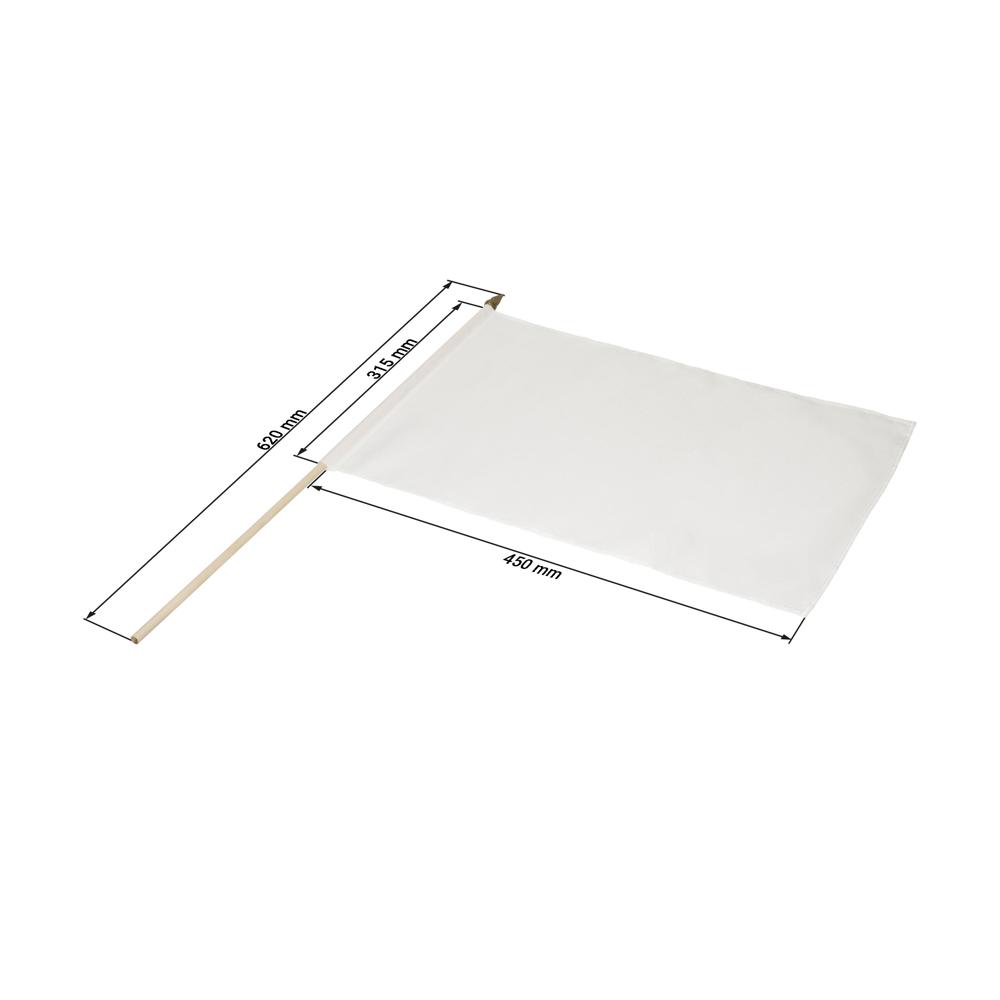 Weiße Fahne an einem runden Holzstab. Die Fahne eignet sich ideal für die Veredelung im Sublimationsdruck. Stab: 60 cm.