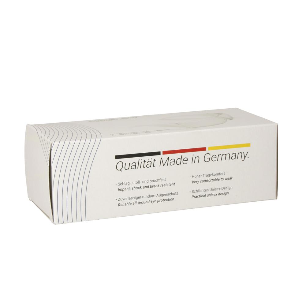 Die Schutzbrille „Safety“ überzeugt durch ihre Funktionalität und ihr Design. Sie besteht aus hochwertigem Tritan, ist dadurch sehr langlebig und gewährt auch über lange Zeit einen hohen Tragekomfort. Sie ist bruchfest und bietet durch die hochgezogenen Gläser einen zuverlässigen Rundum- Schutz für die Augen. Auch für Brillenträger geeignet. Verpackt im Einzelkarton. Zertifiziert gem. Verordnung (EU) 2016/425 persönliche Schutzausrüstung, Kategorie II (Schutz vor mittleren Risiken) EN 166:2001.