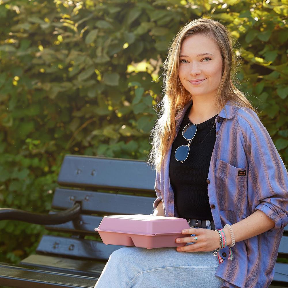 Darf es ein bisschen mehr sein? Die Menübox für eine große Portion zum Mitnehmen. Dank unserer neuen ToGo-Box ist Schluss mit der unnötigen Müllproduktion. Sie ist die wiederverwendbare Alternative zum Einwegmüll und zu 100% recycelbar. Für die Mikrowelle und die (Industrie-)Spülmaschine geeignet. Perfekt für den privaten Bereich und die Gastronomie.