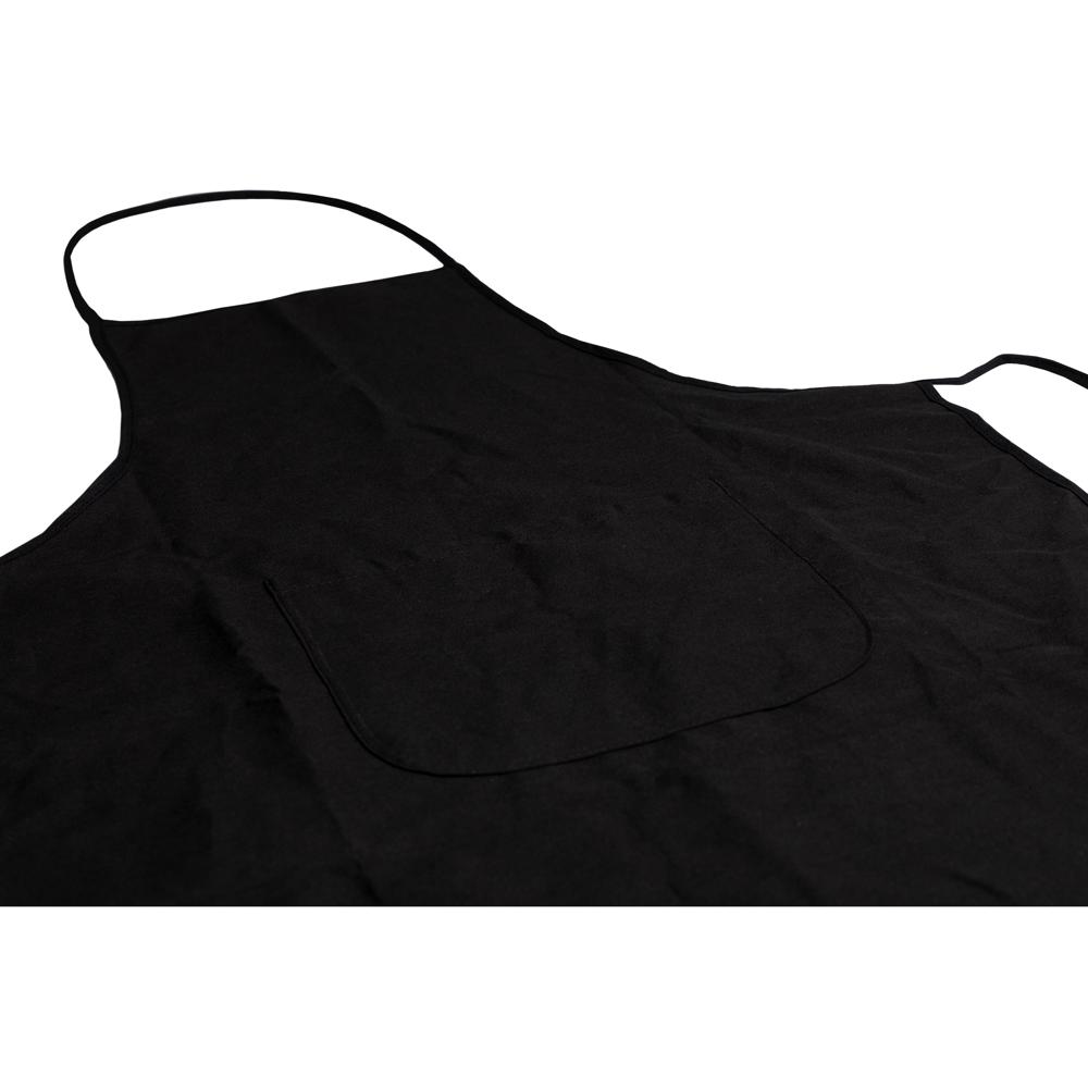 Für alle Profis an Grill und Herd. Hochwertiger schwarze Schürze aus Baumwolle (180 g/qm) mit aufgesetzter Fronttasche. Länge Nackenband: ca. 60 cm. Länge seitliche Bänder: ca. 82 cm.