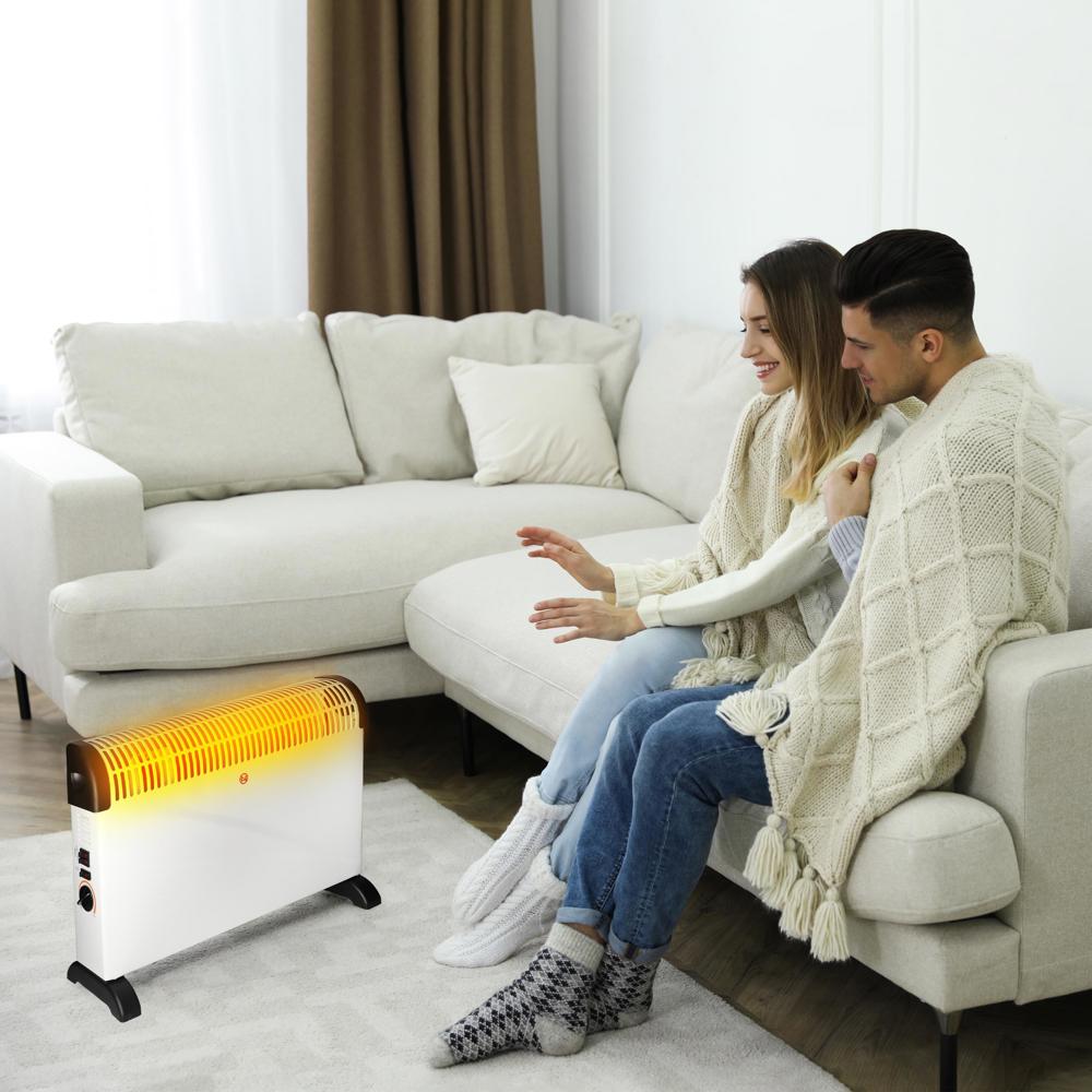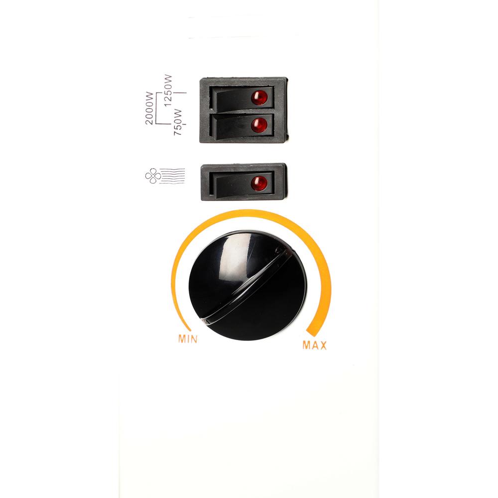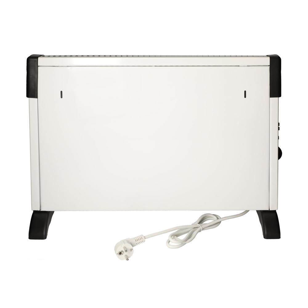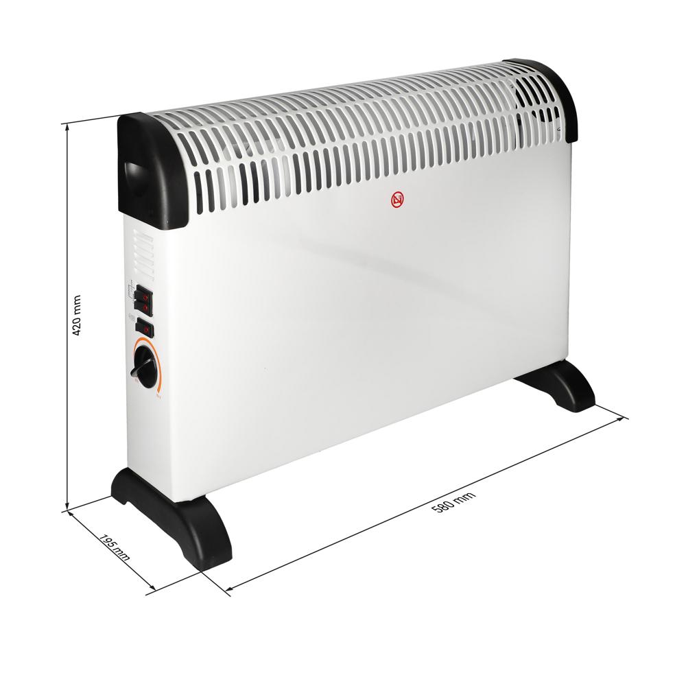 Kompakter Heizlüfter für Innenräume. Inklusive Thermostat zur Regelung der Temperatur, zwei Heizstufen, Gebläse (Turbo) und seitlicher Komfortgriffe. Der Heizlüfter verfügt über einen automatischen Überhitzungsschutz. Nicht für den Dauerbetrieb geeignet.