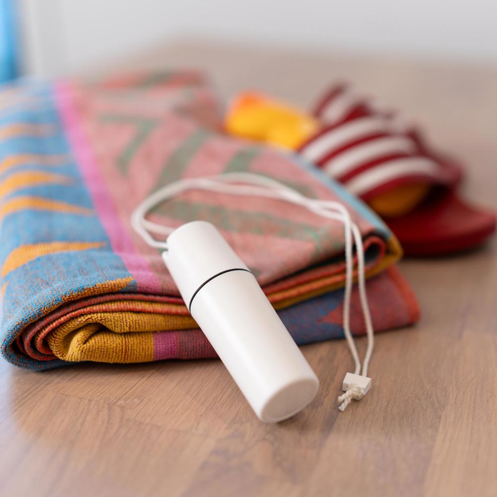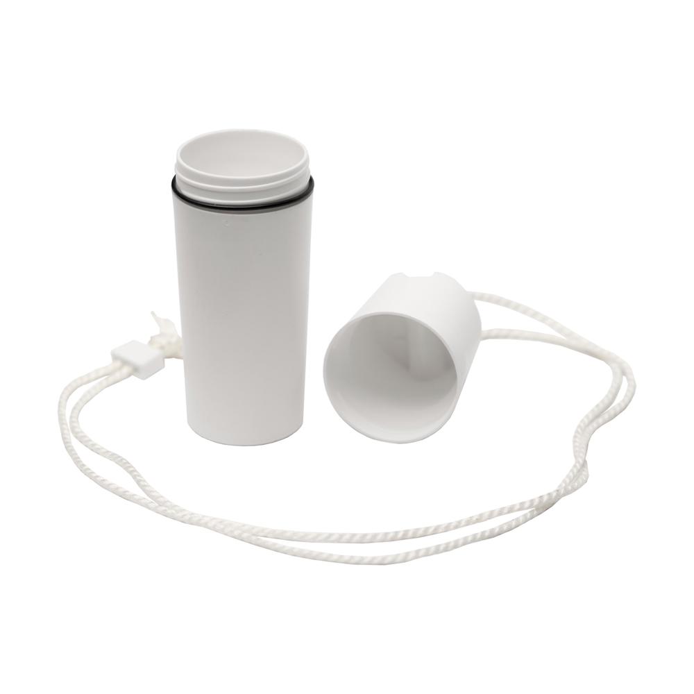 Wasserdichte Badebox mit Schraubverschluss, Dichtungsring und Umhängekordel. Damit müssen Sie Ihre Wertsachen nie wieder aus den Augen lassen.