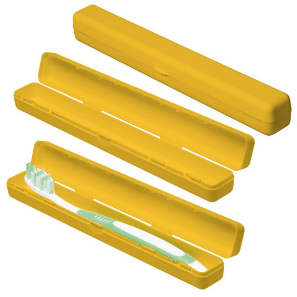 Kunststoffdose zum Aufklappen mit Platz für 1 Zahnbürste zum Schutz vor Schmutz. Ideal zum Verreisen.