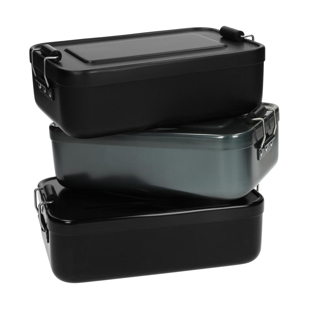 Tolle Brotzeitbox aus Aluminium mit Klemmbügeln für sicheres Verschließen. Der Deckel ist komplett abnehmbar. Erhältlich in matt und glänzend.