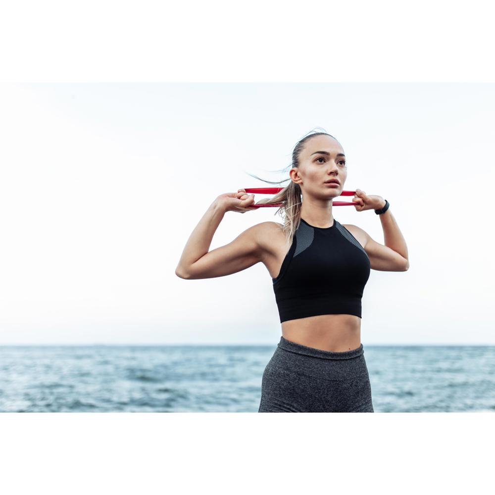 Gezieltes und gelenkschonendes Muskel-Training für jeden. Ringförmiges Gummiband, geeignet für viele verschiedene Übungen zur Verbesserung unterschiedlicher Muskelgruppen. Widerstand: mittel.