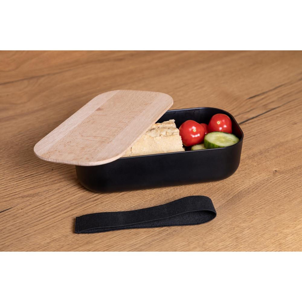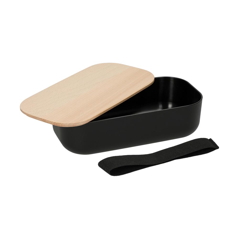 Ein wahrer Eyecatcher im Pausenraum. Die schicke Vorratsdose besteht aus drei Komponenten: Einer Schale aus lebensmittelechtem Bio-Kunststoff, einem Deckel aus Buchenholz und einem Elastikband, welches die Dose sicher zusammen hält. Da das Material des Deckels naturbelassenes Buchenholz ist, kann es zu Schwankungen bei der Farbe und Maserung kommen.