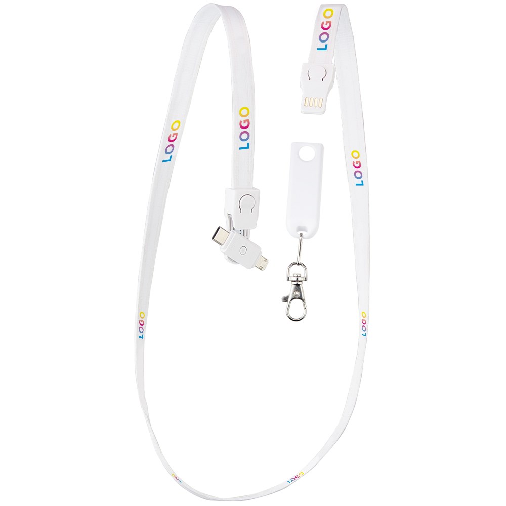 Kundenbindung mit Mehrwert! Allseits bekannt und ebenso beliebt in den Messehallen dieser Welt hat das Lanyard einen unbestreitbaren Stellenwert als moderner Werbeartikel. Es folgt – Sie ahnen es – die Weiterentwicklung und eine ebenso simple, wie geniale Idee: Warum dem ansonsten schnell nutzlosen Halsband nicht eine weitere Bedeutung durch Funktion zumessen? Das Lacecyard 3in1 ist genau das – Lanyard und Schlüsselband. Aber auch Ladekabel mit USB auf 3in1 Stecker für Micro-USB, Lightning und TypeC-Anschlüsse. Ihr Logo auf dem Nylonband bleibt bei Ihren Kunden in diesem Fall sehr viel nachhaltiger im Blick! Der Clip ist den Farben schwarz oder weiß erhältlich. Preis inkl. Druck auf der Nylonfläche.