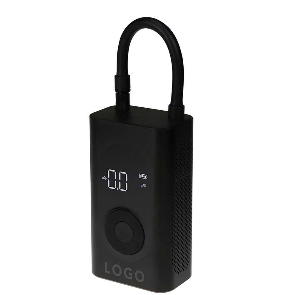 Mobile kabellose Elektro-Luftpumpe mit Hochdruck-Röhre. Ideal zum schnellen und bequemen Aufpumpen von Fahrradreifen oder Bällen. Technische Features wie die Digitalanzeige zur Überwachung des Reifendrucks und der Akku-Ladung, intelligenter Druck-Sensor mit Autostop-Funktion und vielen Voreinstellungen für eine simple Bedienung machen Bike Pump zum perfekten Begleiter für Radtouren, Reisen oder Ausflüge. Ein raffiniertes Design mit platzsparender Integration der Hochdruck-Röhre macht Bike Pump kompakt und leicht. Mit praktischer Taschenlampen-Funktion, drei Licht-Modi, integrierter Powerbank mit 2.000 mAh, wiederaufladbarem Akku und vier verschiedenen Aufsätzen für unterschiedliche Ventiltypen. Ein tolles Werbemittel mit individuellem Logo-Print.