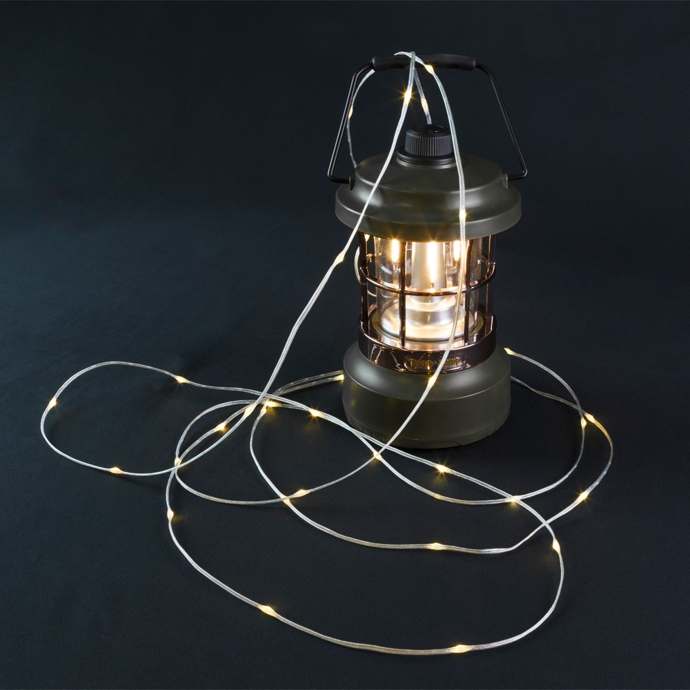 Die Camplamp Retro ist wetterfest (IPX3) und perfekt für Camping und Garten. Stufenlos einstellbare Lichtintensität und Farbtemperatur. Integrierte 15-m-LED-Lichterkette mit drei Modi. 2.000 mAh Akku dient auch als Powerbank für Smartphones.