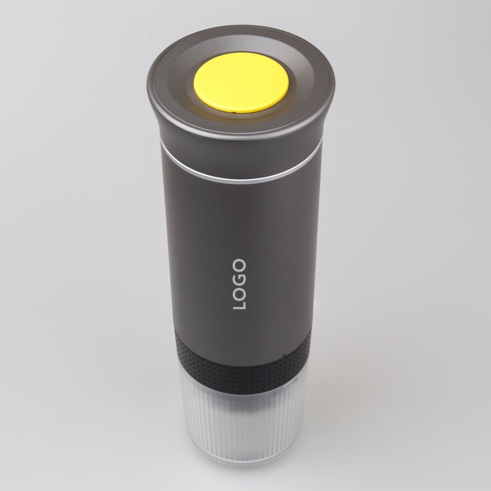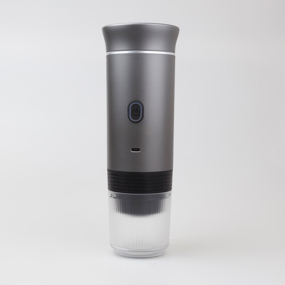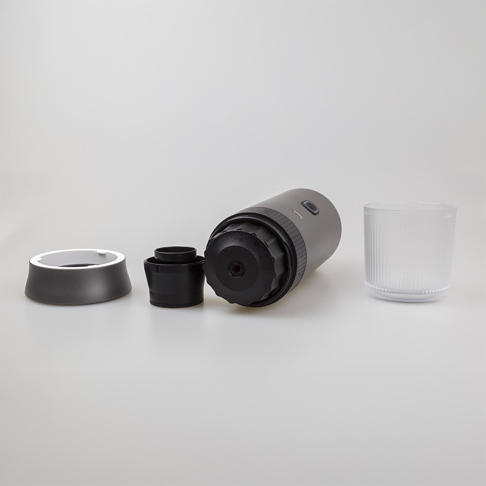 Die kompakte Compresso bereitet kabellos bis zu 50 Tassen Espresso. Dank 3-in-1-Funktion können Kapseln oder Pulver genutzt werden. Smart-Heizung bringt Wasser schnell auf Temperatur. Der integrierte Becher spart Platz, ideal für Reisen. Akku per Typ-C ladbar. Optional ist eine Veredelung mit Ihrem Logo möglich.
