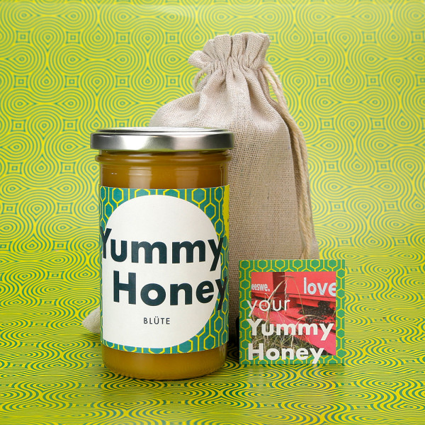 Der facettenreiche Geschmack heimischer Blüten: Seidiger Raps, exotisch-blumige Phacelia, gespickt mit Ahorn, Rosengewächsen, Kern-, Steinobstblüten und Vergissmeinnicht. 100% Deutscher Blütenhonig, zartcremig gerührt. Jeweils mit individueller Etikettierung in Ihrem Corporate Design im Baumwollsäckchen inkl. individueller Yummy Card.