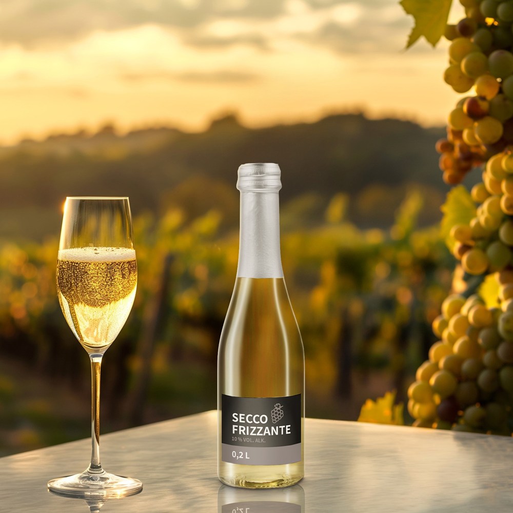 Secco Frizzante, 0,2 l (Glasflasche). Klassischer Perlwein aus Italien (Secco Frizzante) mit elegant-jugendlicher Note.