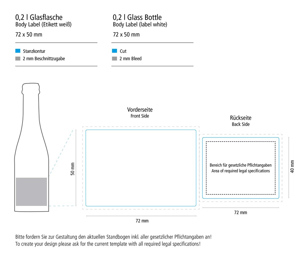 Dekoration: Body Label matt, edelmattes Etikett auf Vorder- und Rückseite der Flasche. Druck: 4c (CMYK)