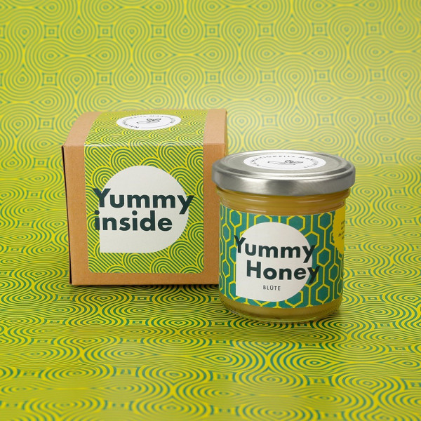 Schöne Geschenkbox aus stabilem, braunen Kraftkarton für Ihren individuell etikettierten #midi Blütenhonig - 200g. Mit frei gestaltbarem Label auf der Box können Sie sich das Geschenkpapier sparen :-) Inklusive Yummy-Honey Compliment Card - auf Wunsch in Ihrer Gestaltung.