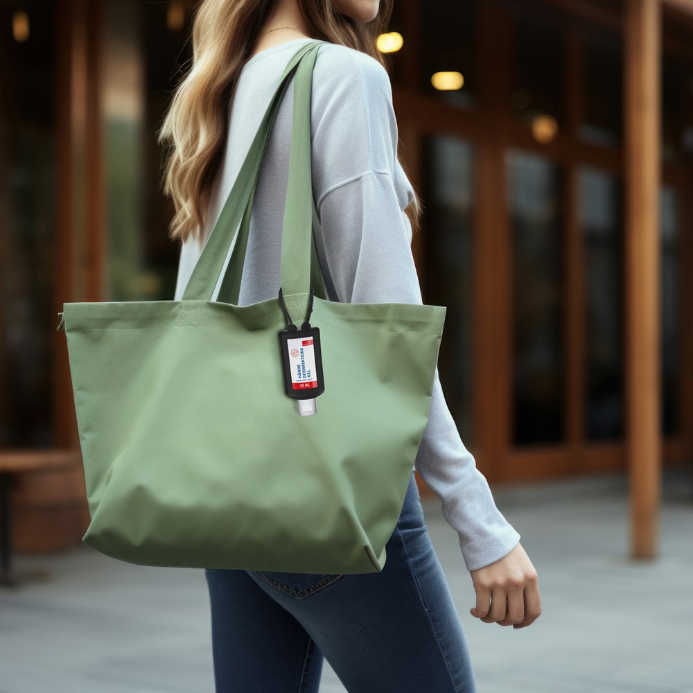 Praktische Flasche zum Anhängen! Das Fläschchen mit Silikonhülle ist nicht nur optisch ein echter Hingucker! Raffiniert mit Schlaufe zum Anhängen ans Handgepäck, an den Rucksack oder an den Kinderwagen. 50 ml Flasche aus 100% recyceltem PET, transparent mit leichter R-PET-Färbung. Mit Klappdeckel "weiß" aus recyceltem PP, zufällig ausgerichtet; Silikonhülle und Schlaufe in schwarz. Nachfüllbar.