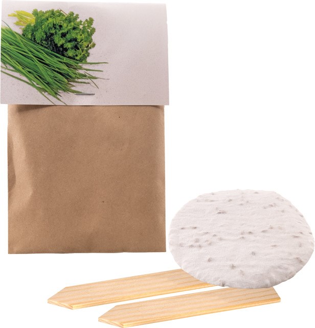 Inhalt: 2 Samenpapiere, 2 Holzstecketiketten, Samen: Petersilie, Schnittlauch
