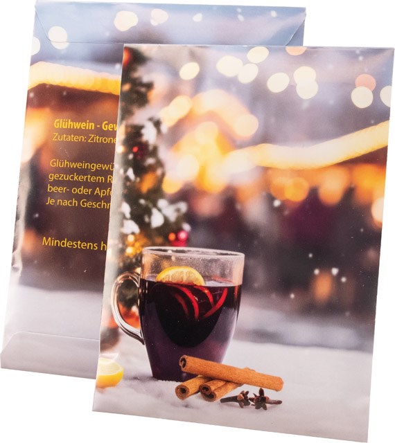 Glühweingewürz-Tütchen 82x114 mm, Glühweingewürz, inkl. Digitaldruck 1-4/0 c