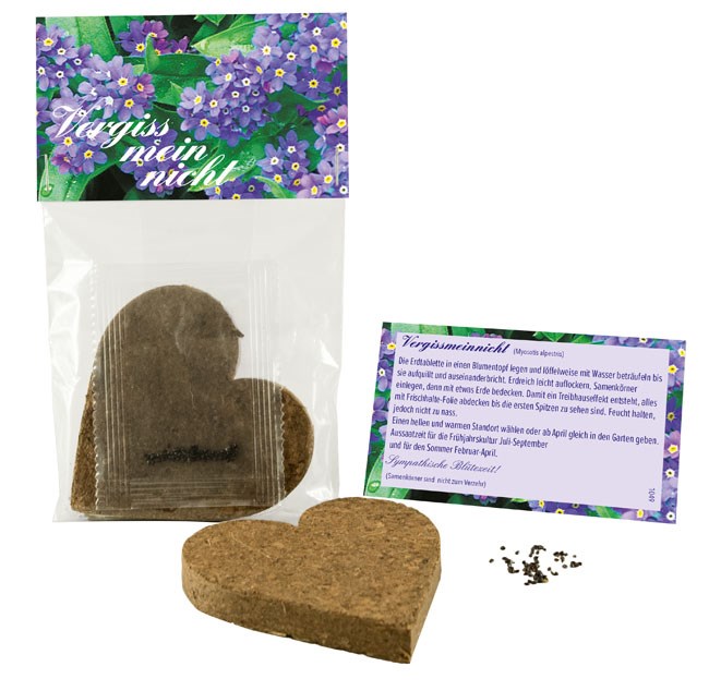Inhalt: Erdtablette Herz, Samen: Vergissmeinnicht