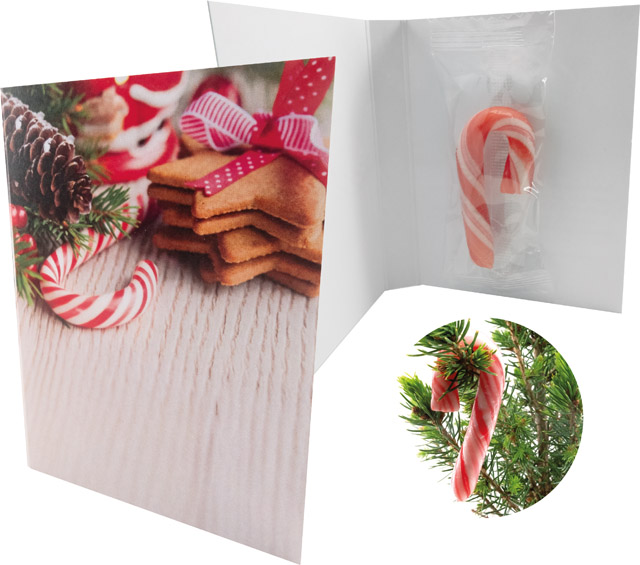 Begeistern Sie Ihre Kunden mit diesem originellen essbaren Baumschmuck. Die kleine Zuckerstange ist ein echter Hingucker. Die Karte im Standardmotiv bietet Platz für Ihren Werbeeindruck. Eine komplette individuelle Gestaltung ist auch ab 250 Stück möglich.