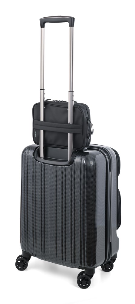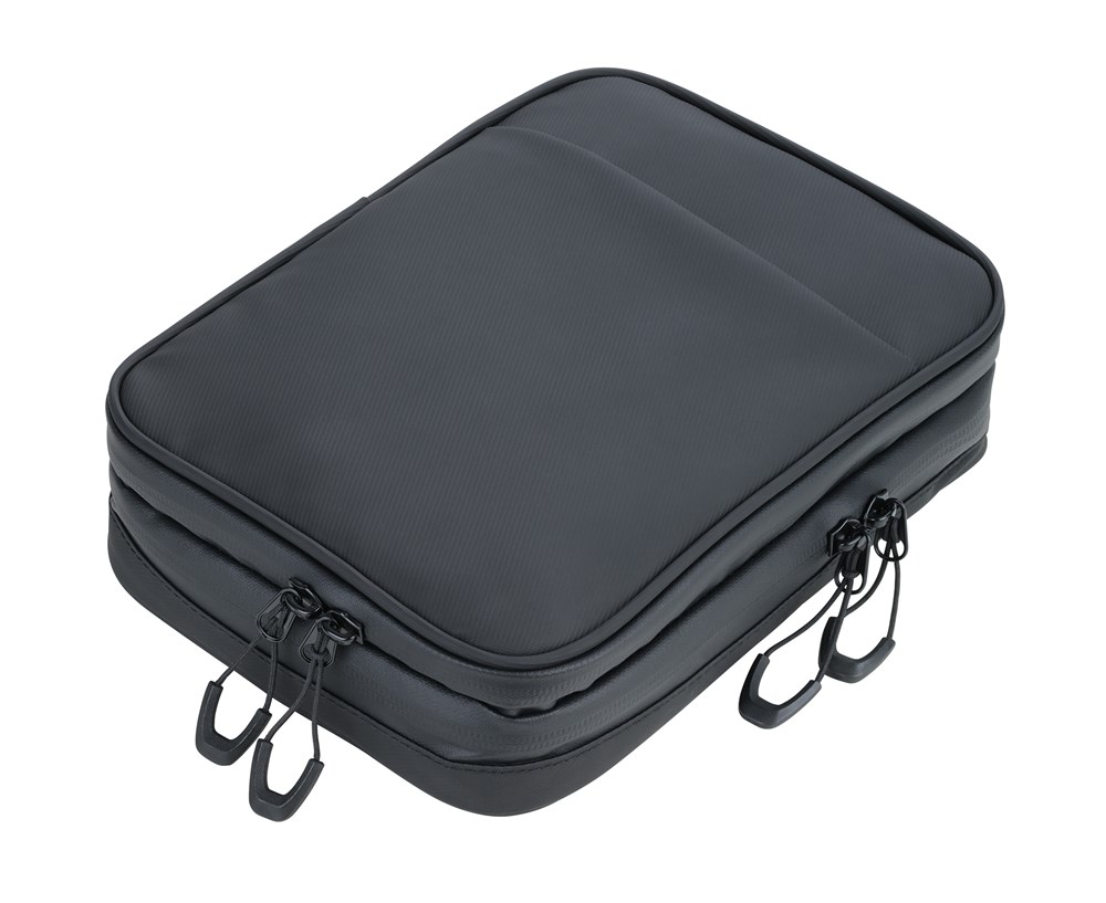 Kabeltasche mit 2 Reißverschlussfächern und wasserabweisenden Reißverschlüssen, 2 Innenfächer mit Netztaschen und Elastikbändern für Zubehör (Every Day Carry), Stiftschlaufe, 1 Außenfach, wasserabweisende Reißverschlüsse, spritzwassergeschützt (Wasserdichtheitsgrad IPX4), Tarpaulin: 80% Polyester, 20% Polyurethan (PU), Schlaufe zur Befestigung am Trolley, Polyester, Polyurethan, Tarpaulin (Plane), schwarz