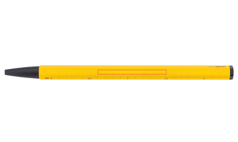Multitasking-Kugelschreiber mit schwarzer D1 Mine, Zentimeter-/Zoll-Lineal, 1:20/1:50 Skala, einfacher Minenwechsel, Aluminium, Metall, glänzend, gelb/schwarz
