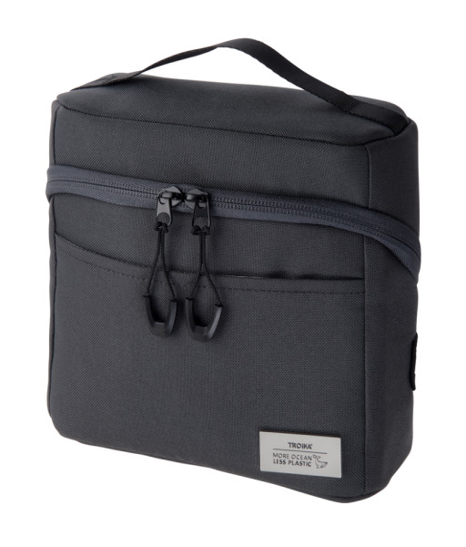 Kabeltasche für Elektronikzubehör, aus recyceltem Meeresplastik, 1 Fach, umklappbar zu 2 Ebenen, mit 2-Wege Reißverschluss, 1 Netzfach mit Reißverschluss, 1 Stiftschlaufe, 6 offene Fächer in verschiedenen Größen für Powerbank, Maus, Speichermedien, Visitenkarten, Ladekabel etc., offene Fronttasche für z.B. das Smartphone, Henkel und Strap zur Befestigung am Trolley, 100% rPET, recyceltes Meeresplastik, dunkelgrau