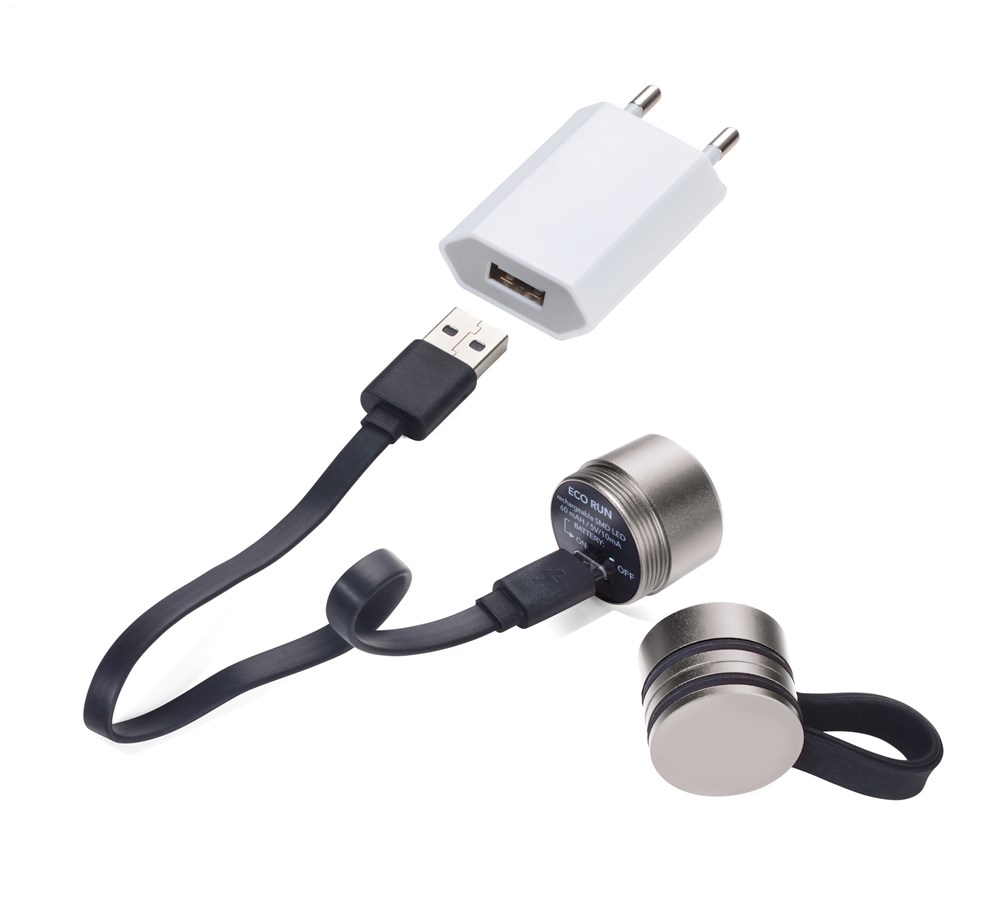 Taschenlampe, Sport- und Sicherheitslicht, inkl. Ladekabel, mit starkem Magnet zur Befestigung, weißes LED-Licht, 3 Leuchtfunktionen: 2 Lichtstärken + Blinklicht, umweltschonend da wiederaufladbar über USB-C (3,7 Volt - 0,5 Watt), Lithium Polymer Batterie 100 mAh, Überlade-/Tiefentladungsschutz, Aluminium, Silikon, matt, schwarz/titanfarben
