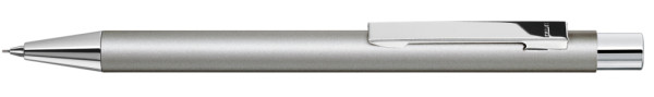 Metall-Druckbleistift (0,7mm) mit mattem Gehäuse. Metallclip, Metallspitze und Drücker silber... mehr