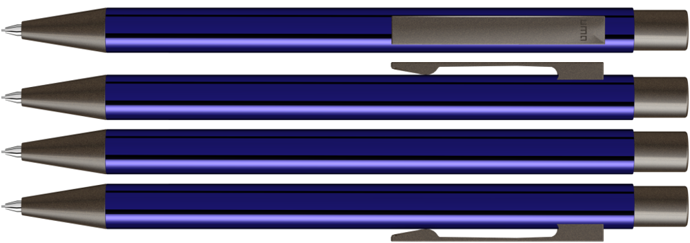 Metall-Druckbleistift (0,7mm) mit glänzendem Gehäuse. Metallclip, Metallspitze und Drücker GUN metallic. Radiergummi im Drücker.