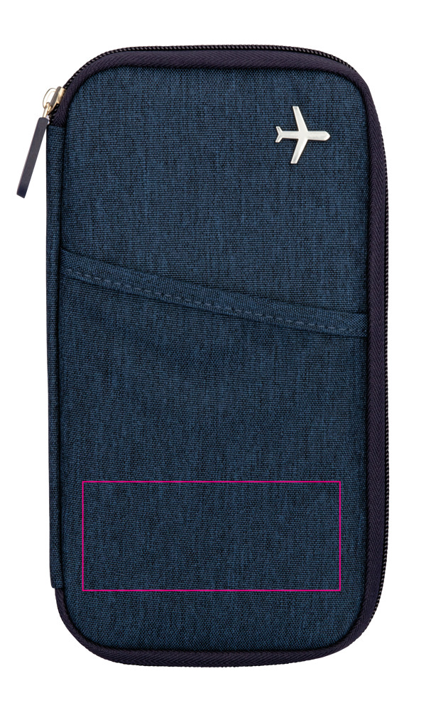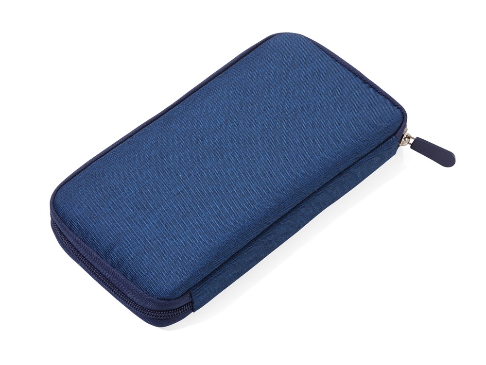 Etui für Reisedokumente, mit Ausleseschutzfolie (für RFID-Chips), Reißverschluss, 12 Innenfächer, Stiftschlaufe, 100% Polyester, Polyester, dunkelblau/orange