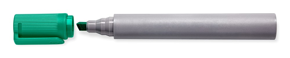Flipchart-Marker, ideal für Papier, da Tinte nicht durchschlägt, sekundenschnell trocken, daher ideal für Linkshänder, DRY SAFE - kann tagelang offen liegen ohne einzutrocknen, Keilspitze, Strichbreite ca. 2-5 mm, Schaft grau, Schoner und Abschlusskappe in Tintenfarbe, Gehäuse aus 97 % recyceltem Plastik, Made in Germany