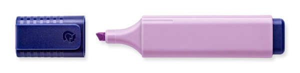 Textmarker mit großem Tintenspeicher für extra lange Markierleistung, Tinte auf Wasserbasis, sekundenschnell trocken, Drehkappe für leichtes Öffnen, Schaft in Tintenfarbe pastell oder vintage, Schoner und Abschlusskappe dunkelblau, Made in Germany