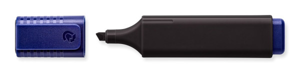 Textmarker mit großem Tintenspeicher für extra lange Markierleistung, Tinte auf Wasserbasis, sekundenschnell trocken, Drehkappe für leichtes Öffnen, Schaft in Tintenfarbe pastell oder vintage, Schoner und Abschlusskappe dunkelblau, Made in Germany