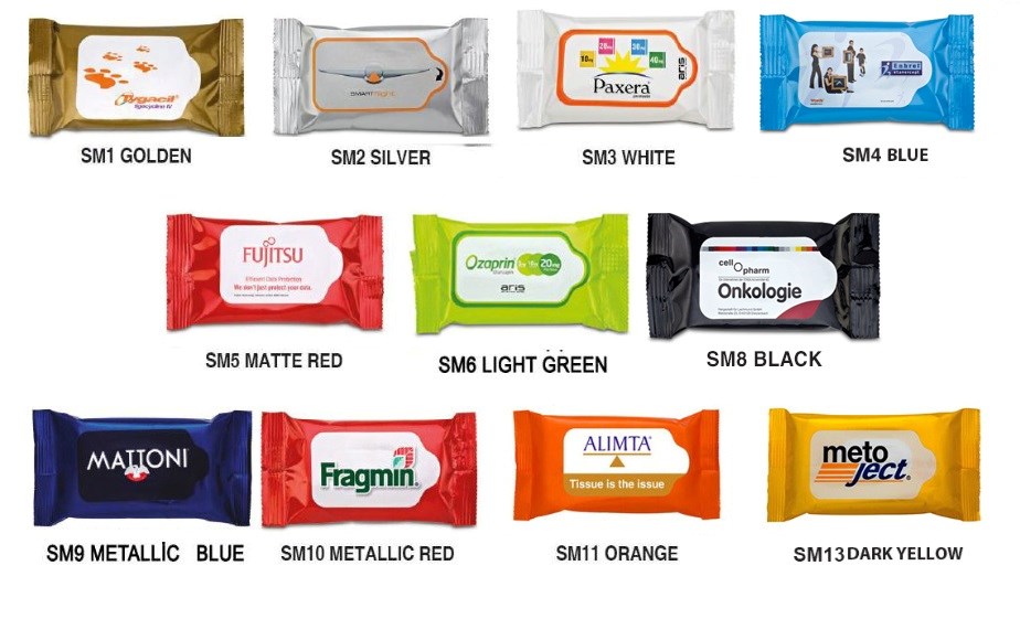 Inhalt 10 Tücher / 120x140 mm in Folie ca. 11x5,5 cm Erfrischungstuch / Tücher 40gr/m² Vliesstoff Duft: cremig, erfrischend herb oder fruchtig Folie in 12 Standardfarben: Gold, Silber, Weiß, Blau, Rot, Hellgrün, Metallic-Grün, Metallic-Blau, Metallic-Rot, Orange, Lila, Dunkelgelb Individueller Druck auf Sticker/Öffnung Größe c. 6,5x3,5 cm / 4c VE: 200 Stück in Box Karton: 38x29x22,5 (h) cm - 6,2 kg