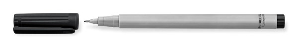 Universalstift für fast alle Oberflächen, für Overhead-Projektion geeignet, wasserlösliche Tinte, Strichstärke S (superfein, ca. 0,4 mm), Schaft grau, Schoner und Abschlusskappe in Tintenfarbe, Gehäuse aus 97 % recyceltem Plastik, Made in Germany, auch erhältlich in aufstellbarer STAEDTLER Box