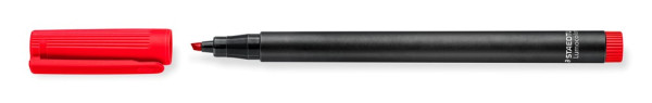 Universalstift für fast alle Oberflächen, für Overhead-Projektion geeignet, hervorragend wisch- und wasserfest auf fast allen Flächen, DRY SAFE - kann tagelang offen liegen ohne einzutrocknen, Strichstärke B (breit, ca. 1,0 oder 2,5 mm), Schaft schwarz, Schoner und Abschlusskappe in Tintenfarbe, Gehäuse aus 97 % recyceltem Plastik, Made in Germany, auch erhältlich in aufstellbarer STAEDTLER Box