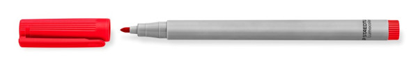 Universalstift für fast alle Oberflächen, für Overhead-Projektion geeignet, wasserlösliche Tinte, Strichstärke M (medium, ca. 1,0 mm), Schaft grau, Schoner und Abschlusskappe in Tintenfarbe, Gehäuse aus 97 % recyceltem Plastik, Made in Germany, auch erhältlich in aufstellbarer STAEDTLER Box