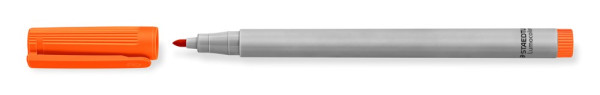 Universalstift für fast alle Oberflächen, für Overhead-Projektion geeignet, wasserlösliche Tinte, Strichstärke M (medium, ca. 1,0 mm), Schaft grau, Schoner und Abschlusskappe in Tintenfarbe, Gehäuse aus 97 % recyceltem Plastik, Made in Germany, auch erhältlich in aufstellbarer STAEDTLER Box