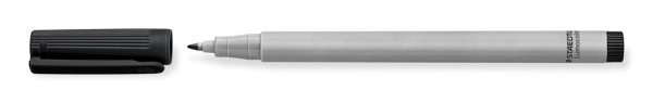 Universalstift für fast alle Oberflächen, für Overhead-Projektion geeignet, wasserlösliche Tinte, Strichstärke F (fein, ca. 0,6 mm), Schaft grau, Schoner und Abschlusskappe in Tintenfarbe, Gehäuse aus 97 % recyceltem Plastik, Made in Germany, auch erhältlich in aufstellbarer STAEDTLER Box