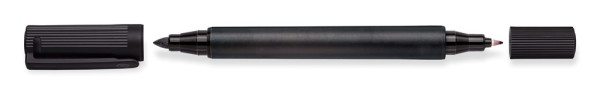 handlicher Marker mit 2 Spitzen zum Schreiben und Markieren auf fast allen Oberflächen, hervorragend wisch- und wasserfest, lichtbeständig, DRY SAFE - kann tagelang offen liegen ohne einzutrocknen, Strichbreiten F (ca. 0,6 mm) und M (ca. 1,5 mm), Schaft schwarz, Schoner in Tintenfarbe, Made in Germany