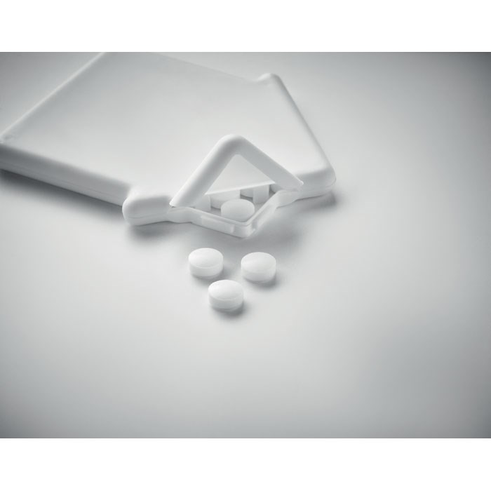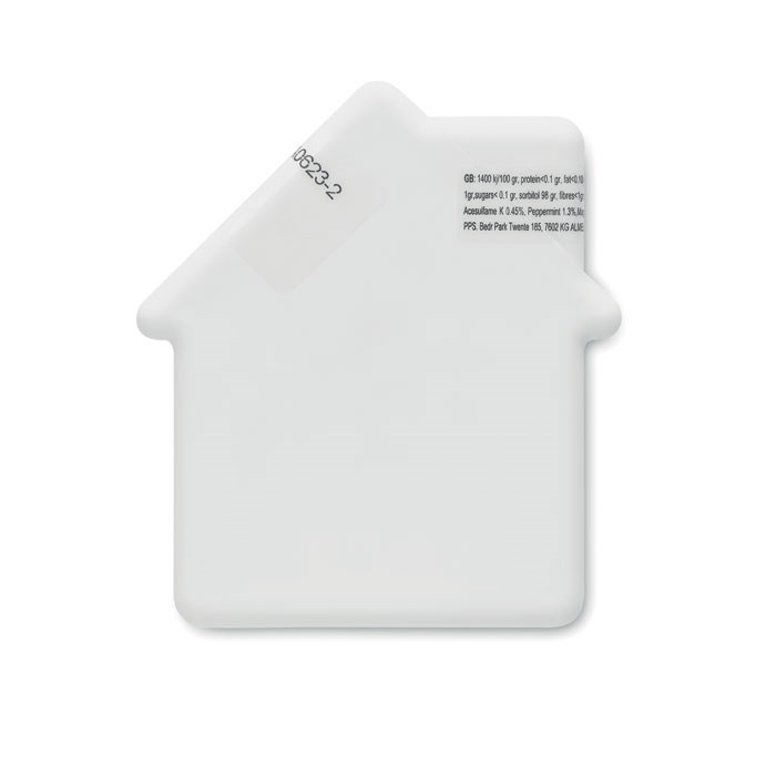 Pfefferminzspender in Optik eines Hauses. Inhalt: 8 g.