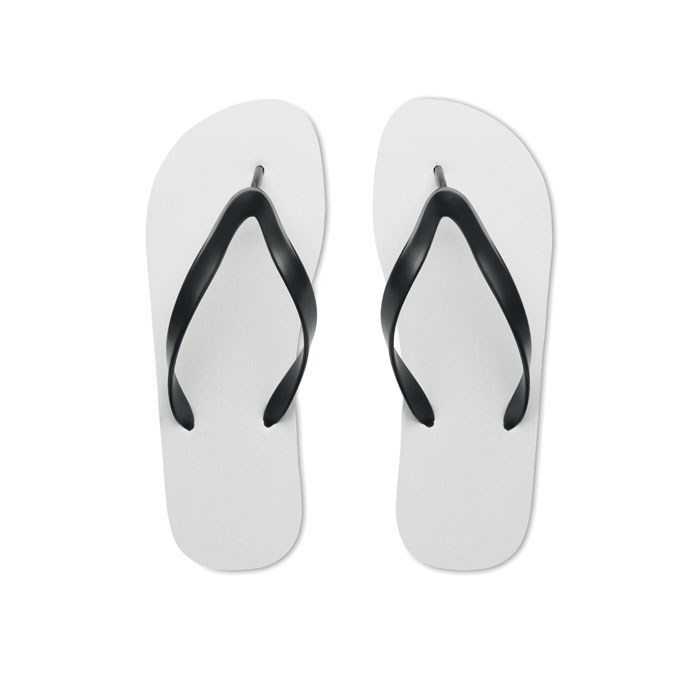 Sublimations-Zehensandalen mit Riemchen aus PVC. Sohle aus Gummi mit Bezug aus Polyester. Größe 42-44. Der Artikel kommt unmontiert. Der Artikel kann nur bedruckt bestellt werden.