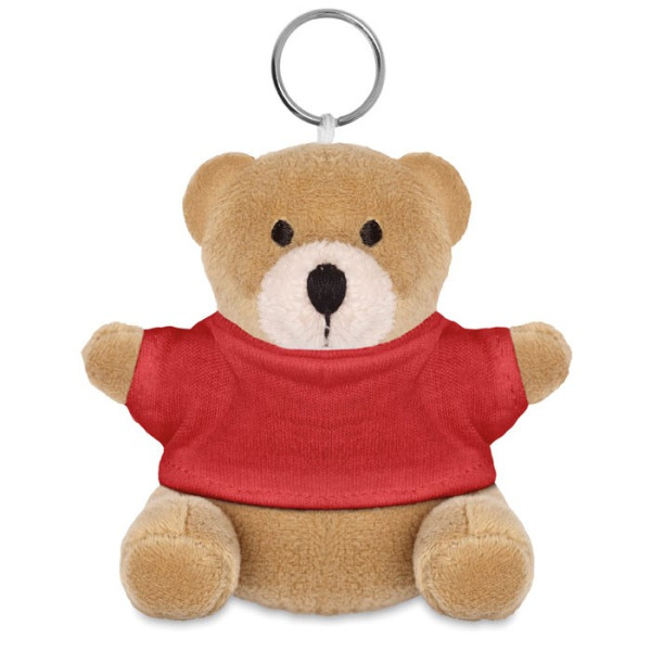 Schlüsselring mit Teddy-Bär. Der Bär trägt ein T-Shirt aus 100% Baumwolle. Ideal zum Veredeln.